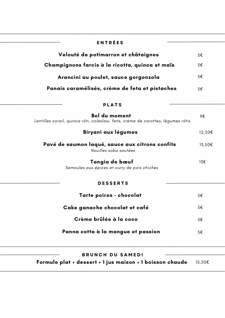 Nos menus sont réécrits toutes les deux semaines ☺︎